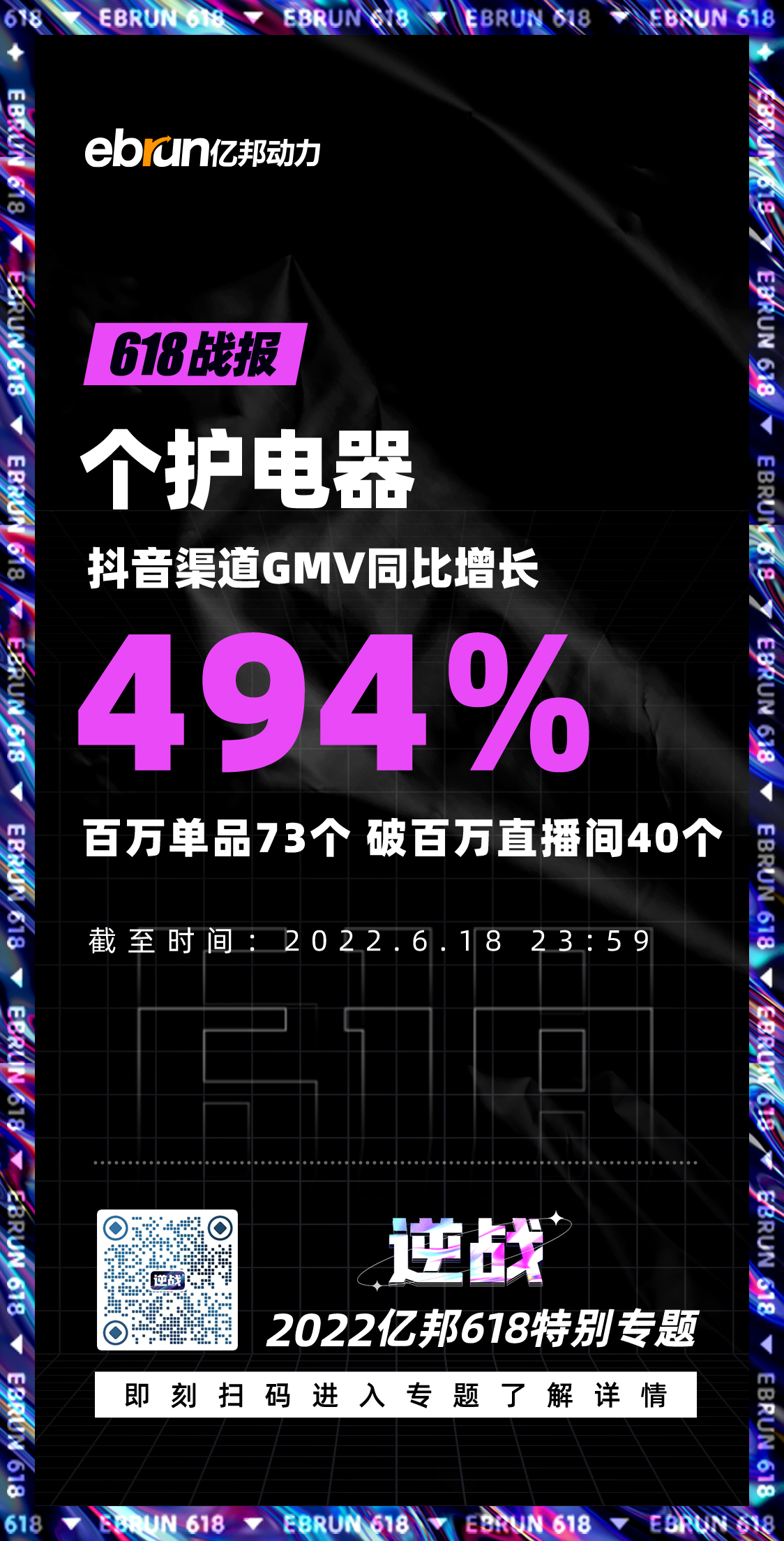 6月21日消息,据抖音618好物节个护电器行业总战报显示,618期间,抖音个护电器品牌商家GMV同比去年618增长了494%。其中,品牌GMV排名TOP3依次为飞科、徕芬和飞利浦。