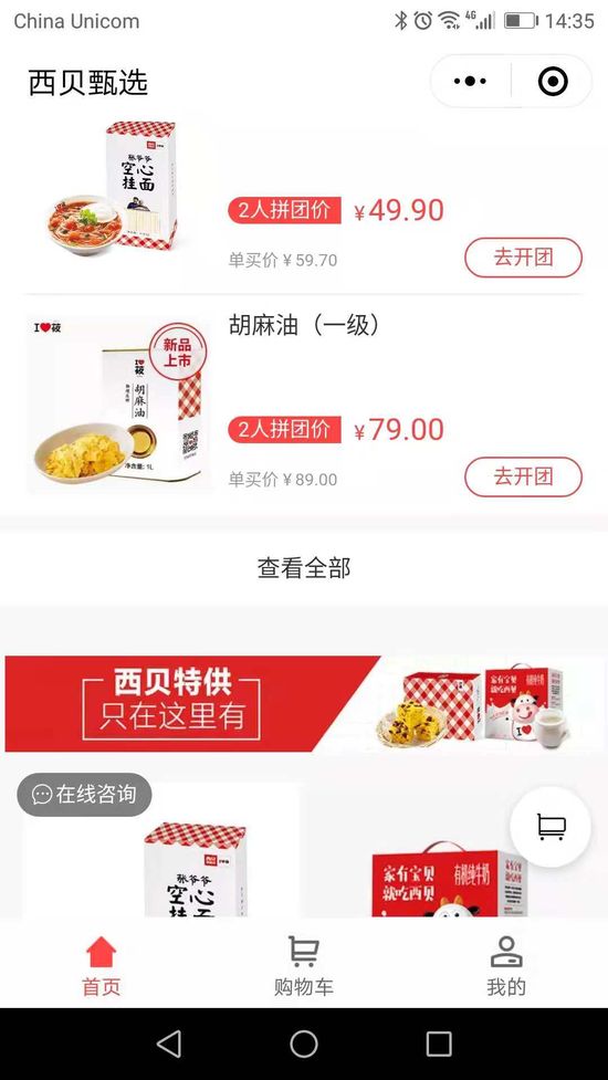 【亿邦原创】10月8日,亿邦动力获悉,知名餐饮品牌西贝莜面馆上线运营小程序西贝甄选,并在首页尝试拼团业务。