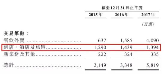 (图注:美团到店酒旅业务交易笔数对比,图片来源:美团招股书)