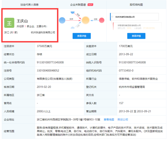 针对此事件,滴滴官方称,杭州快迪科技有限公司是滴滴下属的子公司之一,子公司的法人代表变更属于内部正常的调整变更,对广大用户没有任何影响。