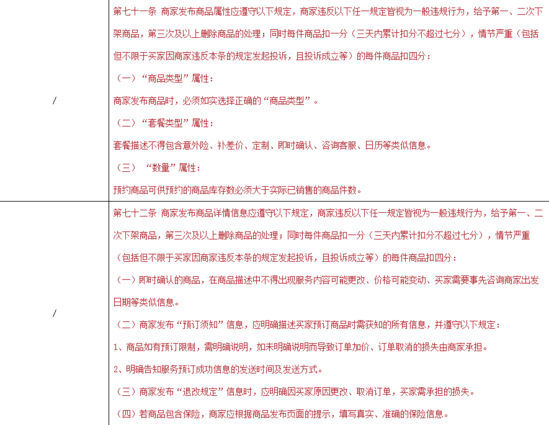 3、商家发布商品属性若违反相关规定,视为一般违规行为,给予第一、二次下架商品,第三次及以上删除商品的处理;同时每件商品扣一分,情节严重的每件商品扣四分;