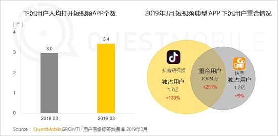 7、不过,短视频APP在下沉市场的竞争加剧,用户人均打开数量已经增至3.4个,抖音短视频和快手下沉重合用户大增251%,争夺存量用户对于短视频APP的发展尤为重要