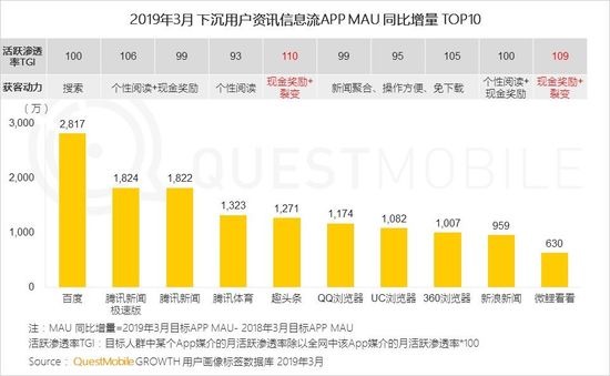 11、在看资讯的时候顺便赚零花钱,对于下沉用户吸引力大,用户增量较大的资讯资讯APP普遍加入了现金奖励措施,趣头条、微鲤看看通过现金奖励和裂变方式,成为下沉市场资讯资讯增长典型