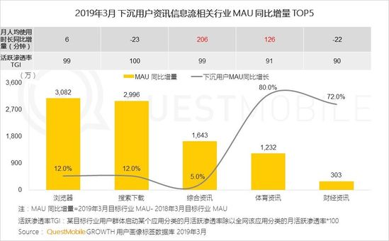 10、资讯信息流行业:浏览器、搜索下载是下沉用户最普遍的信息获取方式,新增用户最多,综合资讯和体育资讯细分行业的时长增长突出