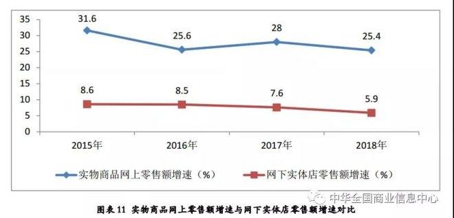 根据国家统计局数据测算,2018年我国网下实体店零售额增速同比增长5.9%,相比上年放缓1.7个百分点,网下实体店零售额增速虽然明显低于网上实物商品消费增速,但是2018年网下实体零售店努力开拓新业态、提升供应链效率、增强消费体验,整体保持了较为平稳的增长。