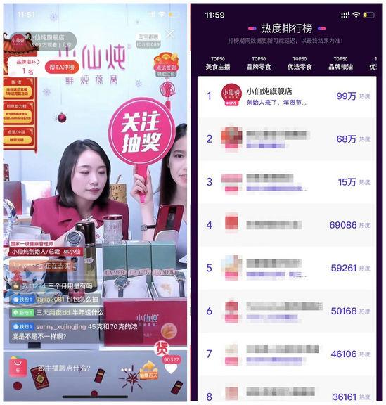 2019年的双11,小仙炖达成了预定目标——成为首个进入天猫亿元俱乐部的鲜炖燕窝品牌。其中,小仙炖店铺直播间不仅带来了2270万元的双11销量,更让敏感的小仙炖发现了和用户沟通的新方式。