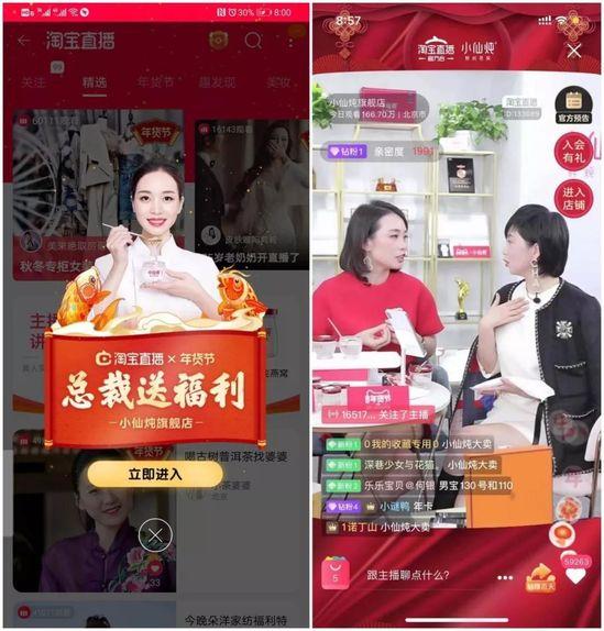 亿邦动力了解到,在1月2日至18日期间,淘宝直播推出“总裁饭局”直播栏目,将提供官方的资源流量扶持,贯穿天猫年货节。经过前期策划、报名选拔和竞争PK,小仙炖最终成为了“总裁饭局”的首个开播品牌。