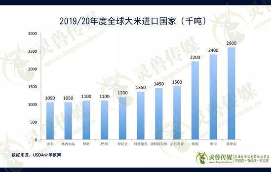2019年,中国大米进口255万吨,同比下降53万吨,进口大米占中国大米消费约1%。