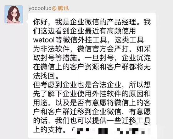 每天新增数万粉丝和几百个微信群的工作量非常考验企业的服务能力,WeTool被封后对企业的直接影响是工作效率明显下降,大量人力分配到了机械性的工作内容中,与服务对象深度沟通的时间没有了。甚至有学生把教育机构投诉到工商局了,因为他们交完钱找不到客服了。