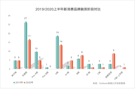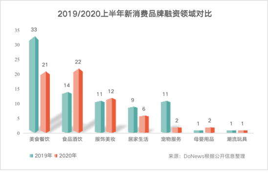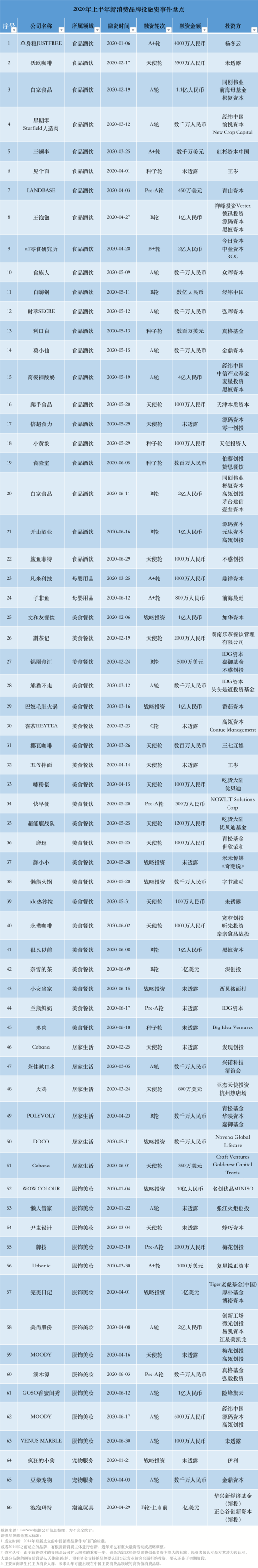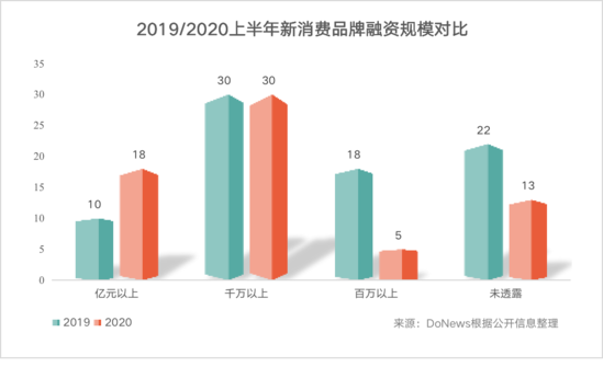 我们试图寻找这些答案。「DoNews」对2020年上半年新消费品牌投融资事件进行了梳理,相较于2019上半年80起融资事件,2020年上半年共披露66起,有近18%降幅。