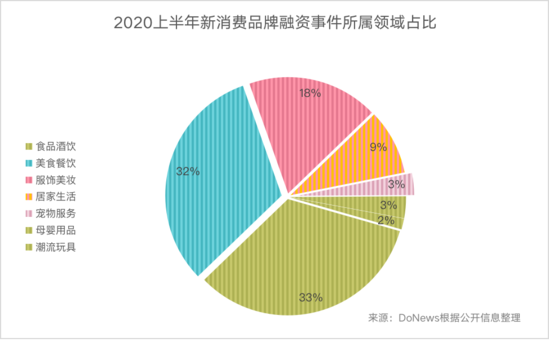 2020上半年新消费赛道,食品酒饮项目获得融资最多,共计22起,占总融资事件的33%;其次是美食餐饮共计21起,占比为32%。