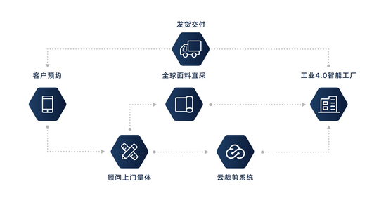 “云裁剪平台”是通过客户身材数据自动推出适合他的版型,然后通过云服务器下发到工厂裁床进行裁剪的平台。衣邦人预先将品类版型和推版规则数字化并配置在云服务器,衣邦人着装顾问上门采集顾客身材数据并上传后,云裁剪平台将通过无极推版的方式进行推版,区别于传统提前放码通过对应码进行推版,衣邦人无极推版是由一个模板推出,真正做到单人单版。与此同时,衣邦人为工厂提供订单系统升级等技术支持,大大提升服装制作效率,缩减用户收货时间,据了解,从订单确认到发货最快仅需10个工作日。