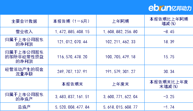 | 主要会计数据 | 本报告期(1-6月) | 上年同期 | 本报告期比上年同期增减(%) |
