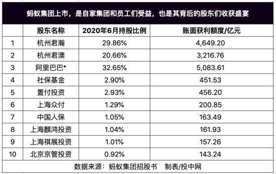 蚂蚁集团上市,不仅是自家员工受益,背后的股东也赚得盆满钵满。