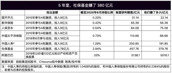 早在2018年,社保基金原副理事长王忠民就介绍说,2015年对蚂蚁的投资收益已经超过5倍。2015年,社保基金78亿元人民币参股蚂蚁A轮投资。