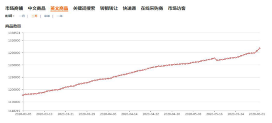 图. 义乌购3-6月份英文在线商品数量