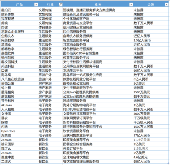 自2018年开始,蚂蚁陆续四次投资印度美食推荐平台“Zomato”,共耗资11.6亿美元;在饿了么的投资中,蚂蚁联合阿里巴巴一共投资了115亿美元;还对阿里旗下的本地生活平台“口碑”大手笔投了60个亿。