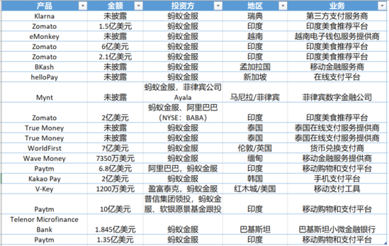 此外的大手笔投资还包括:8亿入股台资保险公司国泰产险、7亿美元入股货币兑换支付商“WorldFirst”等,颇引人注目的还包括在海外的支付工具投资。