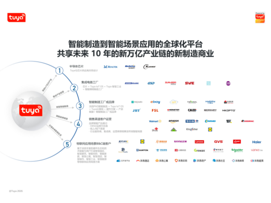 涂鸦智能的全球化智能平台能够同时服务中小品牌和巨头企业。据了解,2019年涂鸦智能的“星云计划”在全球40多个国家扶持了超过40个品牌,成为当地第一的IoT的品牌,同时,世界500强企业中已经有超过30家跟涂鸦开始全面的战略合作。