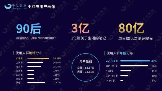 报告显示:小红书88.37%为女性用户,70%为90后,56%来自北京、上海、广州、深圳四大一线城市。