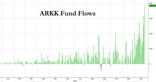 根据彭博汇编的数据,圣诞节前,ARK Invest旗下的ETF ARKK的总资产增至近180亿美元,这也令ARKK管理的资产超过了管理着152亿美元的摩根大通超短收益ETF(JPST)。