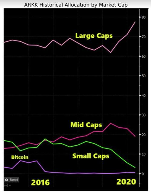 今年以来,ARKK已经显示出从小公司转向大公司的显著转变。