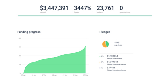 第二,零库存,卖完发货。卖家在海外众筹平台上所获得的众筹费用,平台在收取一定佣金后,剩下的将全部交还卖家,基本能实现先拿钱再发货。从销售角度,一定程度上实现了产品“预售”的作用,但同时又拥有第三方信任平台的背书。