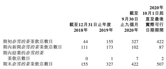 奈雪历年门店变化情况,图据招股书