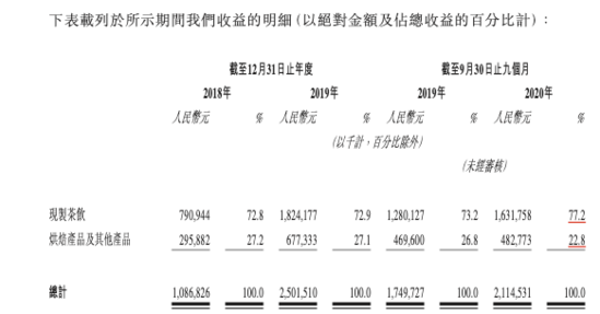 奈雪按产品品类收益明细,图据招股书
