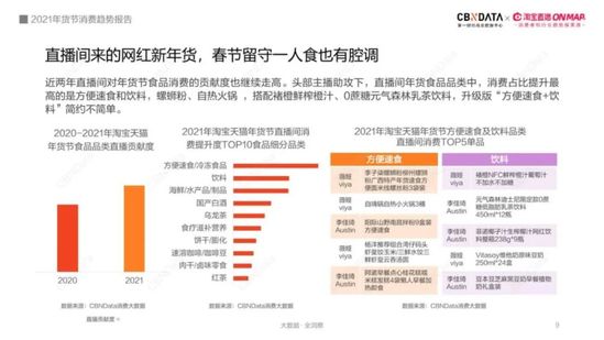 随着电商直播的高歌猛进,直播间成了年货消费的新场景和新增量,2021年直播消费贡献度相比去年有较大增长。