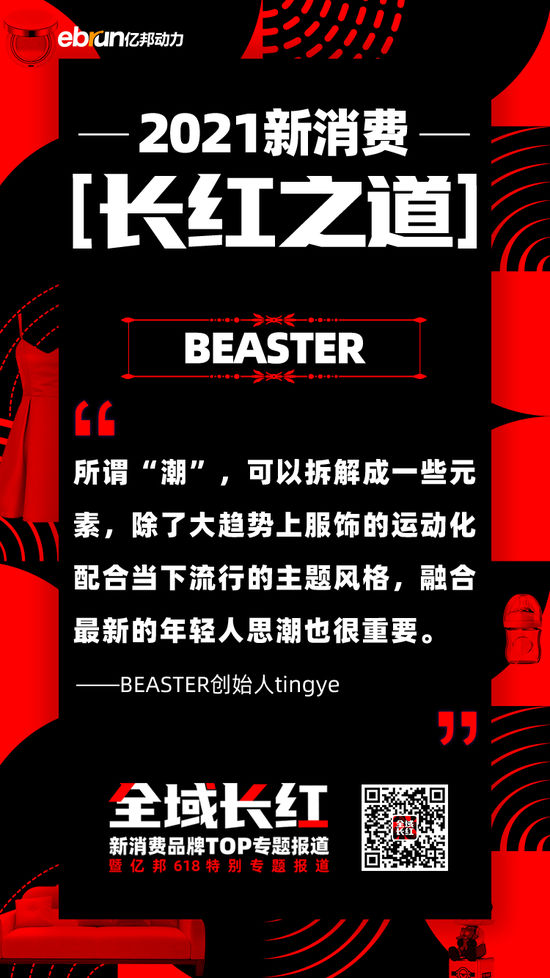 “很多人把BEASTER看成潮牌,但我们的定位不仅限于此,BEASTER影响的是更广泛的年轻人群。”一向低调的tingye日前接受亿邦动力访问,他从未对外分享过BEASTER的商业逻辑,但看得出他的规划清晰而长远。