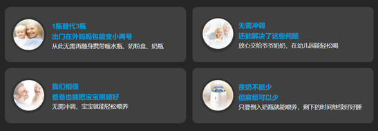 3、温度方面,通过买赠的方式,选择了一款知名品牌的温奶器作为赠品,进行搭配售卖,以解决用户的诉求。