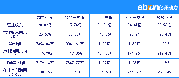 2021年半年财报明细
