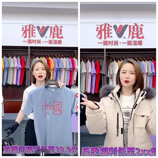 图为快手账号“雅鹿品牌服饰”短视频截图