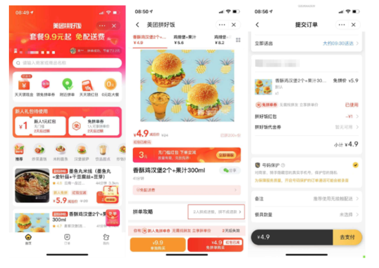 而更早之前,在2020年7月,美团还曾内测“拼好饭”功能。相当于外卖拼团,用户点外卖时可以选择以单买价格和拼单价格购买。当时的使用场景是,用户若想低价点餐,就需要先支付之后再分享给好友进行拼团,好友进店点餐支付之后,即拼团成功。