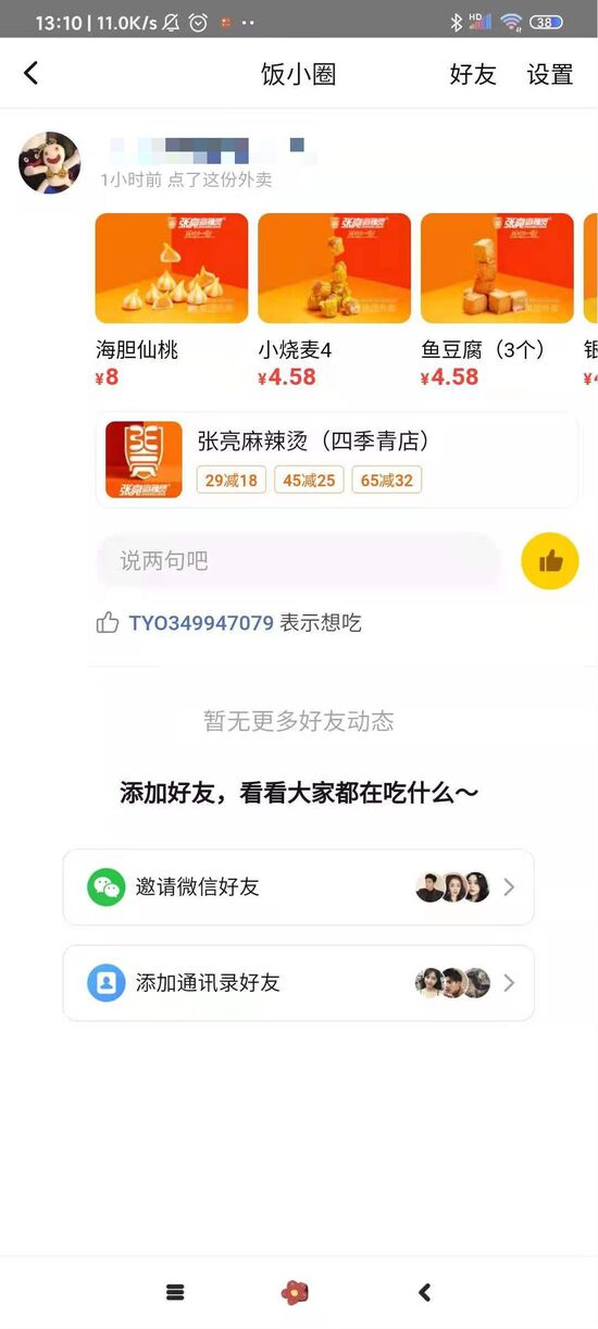 据了解,美团外卖本身不具备好友体系。但目前,“饭小圈”用户可以通过“开放”微信通讯录或者手机通讯录定向邀约好友加入“饭小圈”。