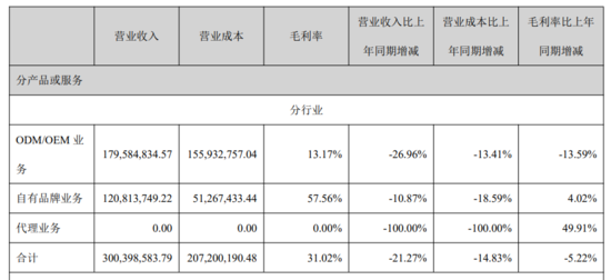 2021年上半年,杰美特实现营业收入3亿元,其中主营业务收入约2.87亿元,主营业务收入占公司营业收入的95.64%。杰美特主营业务由ODM/OEM业务和自有品牌业务两大业务构成。