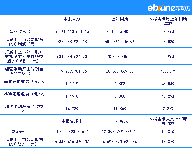 | 归属于上市公司股东的净利润(元) | 727,088,925.18 | 501,361,146.96 | 45.02% |
