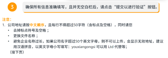 这里小编要提醒一下,材料也是有所要求的:一是要在180天内开具证明;二是证明上的名字和地址要与卖家平台的一致;三是证明上的语言要是简体中文或者英语;四是不接受屏幕截图;五是公司章程一定要是能够准确体现出全部股东名字和股权分配的文件,同时还需要所有受益人签字,并加盖公司公章。
