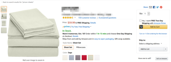 那么怎样才算侵犯版权呢?比如说Pinzon品牌所有者拍摄了如下床单照片,拥有这些床单图片的版权。假如卖家打算将如下床单的照片复制到自己的商品详情图片中,并进行销售,那么这个卖家就是侵犯了Pinzon床单图片的权利所有者的版权。
