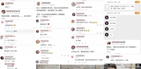 划算节开抢前一周,网友们就开始了全网收集“神码”的行动,比如进入“神码内购会”主会场参与抽奖,拉人助力获得更多抽奖的机会,或者蹲守全网达人,盯紧不定期的神码发放。其中,创新的谜题发码事件让搜集“神码”事件迅速扩散,在“神码”发布首日就掀起了集中参与的热潮,参与者数量也随着裂变急剧增加。