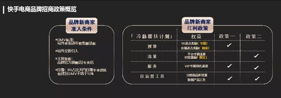 我们现在也在重点进行品牌商家的招商。一方面会欢迎所有在市场上非常有影响力、在站外有一定规模的品牌能够拥抱到快手电商的生态中,拥抱到5亿用户。我们也为大家提供了冷启动的两个套餐。比如大家可以在一定的时间内,当然有一定的任务,比如说自播比例、GMV的目标,完成任务可以获得自播和分销的平台服务费的返点等政策。我们可以在店铺自播冷启动进行1:1的对投,关于招商具体政策和入驻,大家可以在群里咨询各个行业的小二。