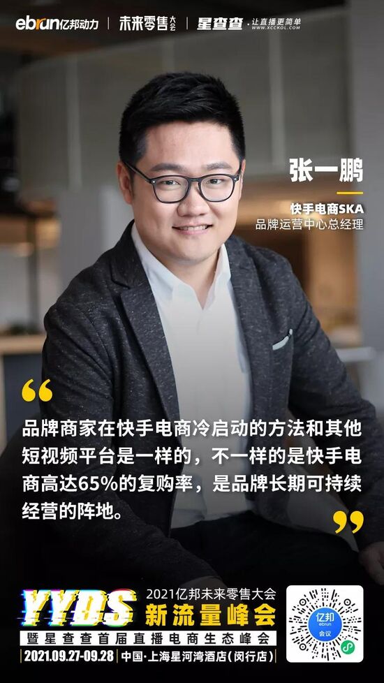 【亿邦原创】在昨日举办的“2021亿邦未来零售大会-新流量峰会上”,快手电商SKA品牌运营中心总经理张一鹏发表了题为《快手电商——品牌的万亿蓝海市场》的演讲。