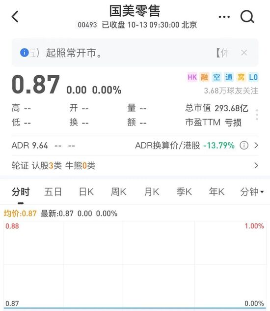 当下的国美,已经处于一个非常艰难的尴尬境地。国美零售在港股的股价已经跌到一块钱以下,只有0.87元,可见资本市场对国美多么缺乏信心。
