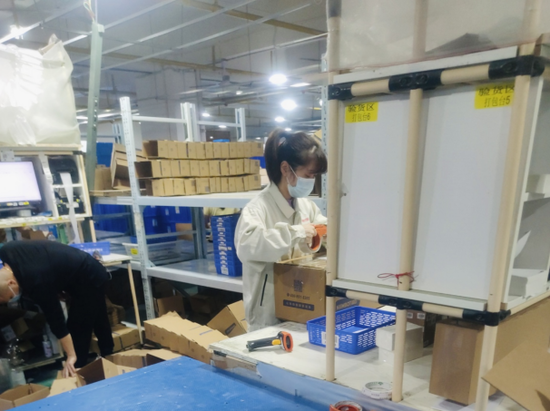 (图:2021年双11期间的精臣仓库,工作人员正在对预售商品进行打包)