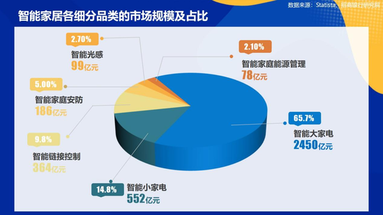 26年后的今天,在消费升级、渠道变革、技术革新等多重因素催化下,智能家居正在中国掀起消费新浪潮。数据显示,中国智能家居规模在2025年将突破8000亿元,年复合增长率高达15.8%,未来将是一个万亿规模的市场。而从细分品类数据看,智能家电占比高达80.3%,已成为智能家居市场必争之地。