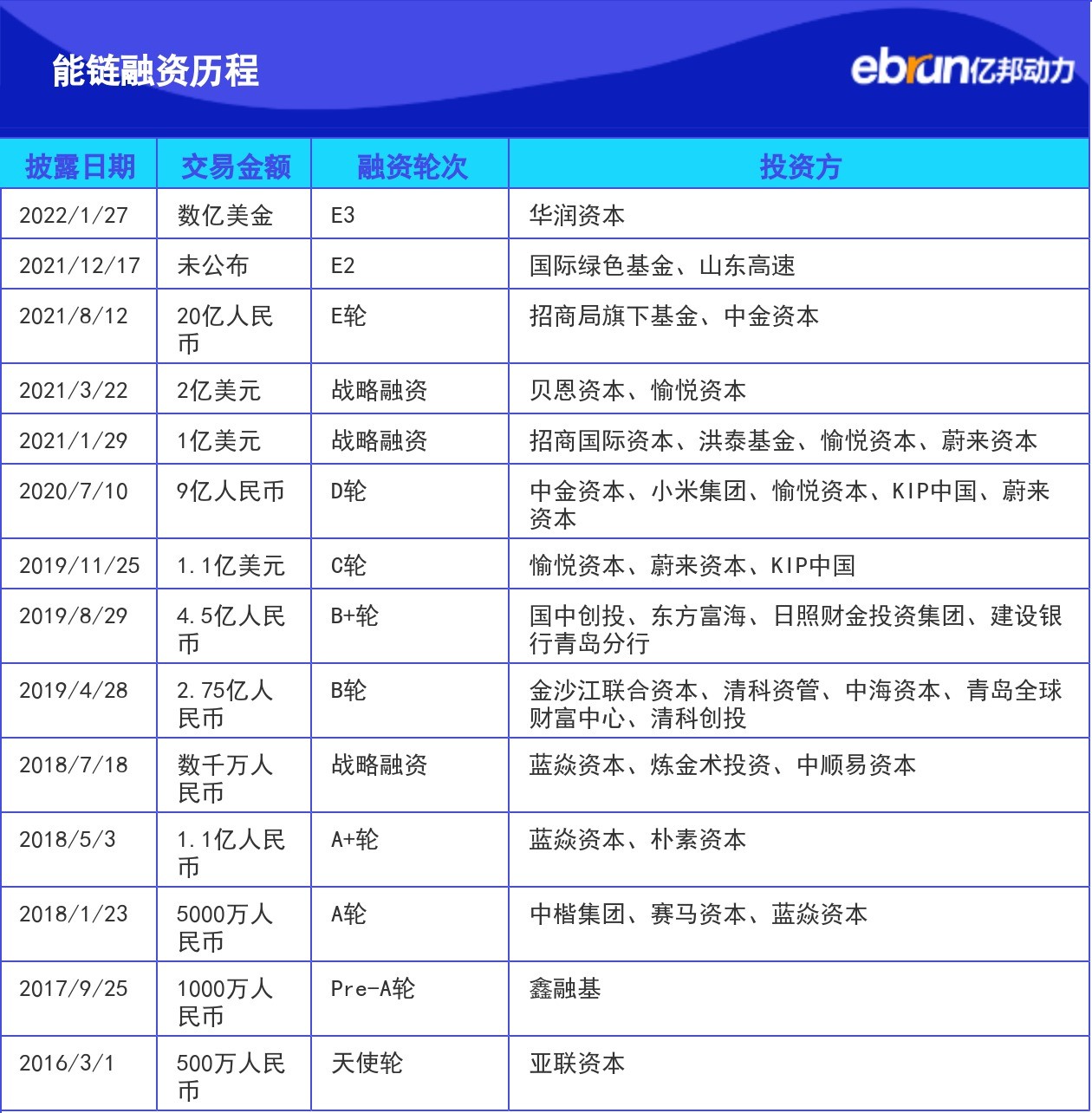 | 能链融资历程 | |||