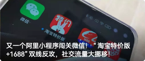 2、又一个阿里小程序闯关微信!“淘宝特价版+1688”双线反攻,社交流量大挪移!