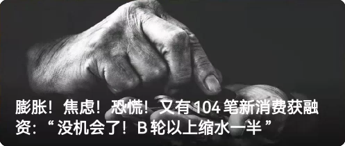 1、膨胀!焦虑!恐慌!又有104笔新消费获融资:“没机会了!B轮以上缩水一半”