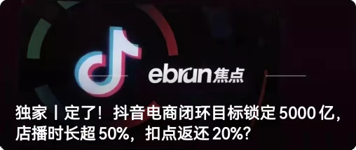 1、独家丨定了!抖音电商闭环目标锁定5000亿,店播时长超50%,扣点返还20%?